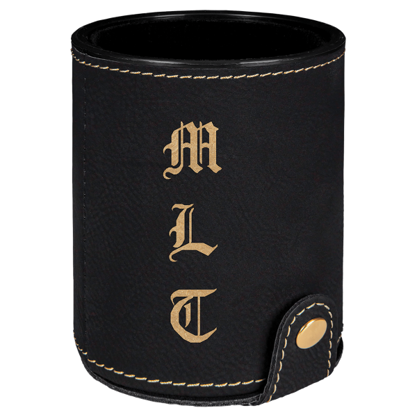 Let the games begin with this sturdy leatherette dice cup set! Leatherette is a man-made material that offers the beauty and durability of leather at a fraction of the cost. The cup features a velvet lining and a snap closure at the bottom where the 5 included dice can be stored. A perfect size to take along or for game nights at home, it’s available in several colors that can be personalized by laser engraving to a bold contrast. Also great for UV print!