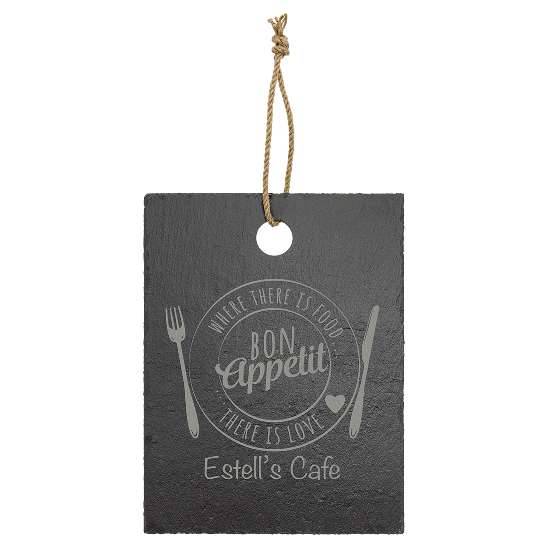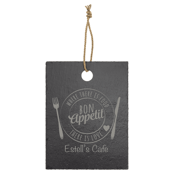 This laserable Slate Stone Decor piece makes a great corporate or personal gifts! Customize them with your choice of engraving! Each Piece varies slightly in exact shape and color, these are real slate so no two are identical. Comes with rope style string to hang. 11 1/2 x 8 3/4″ Rectangle.