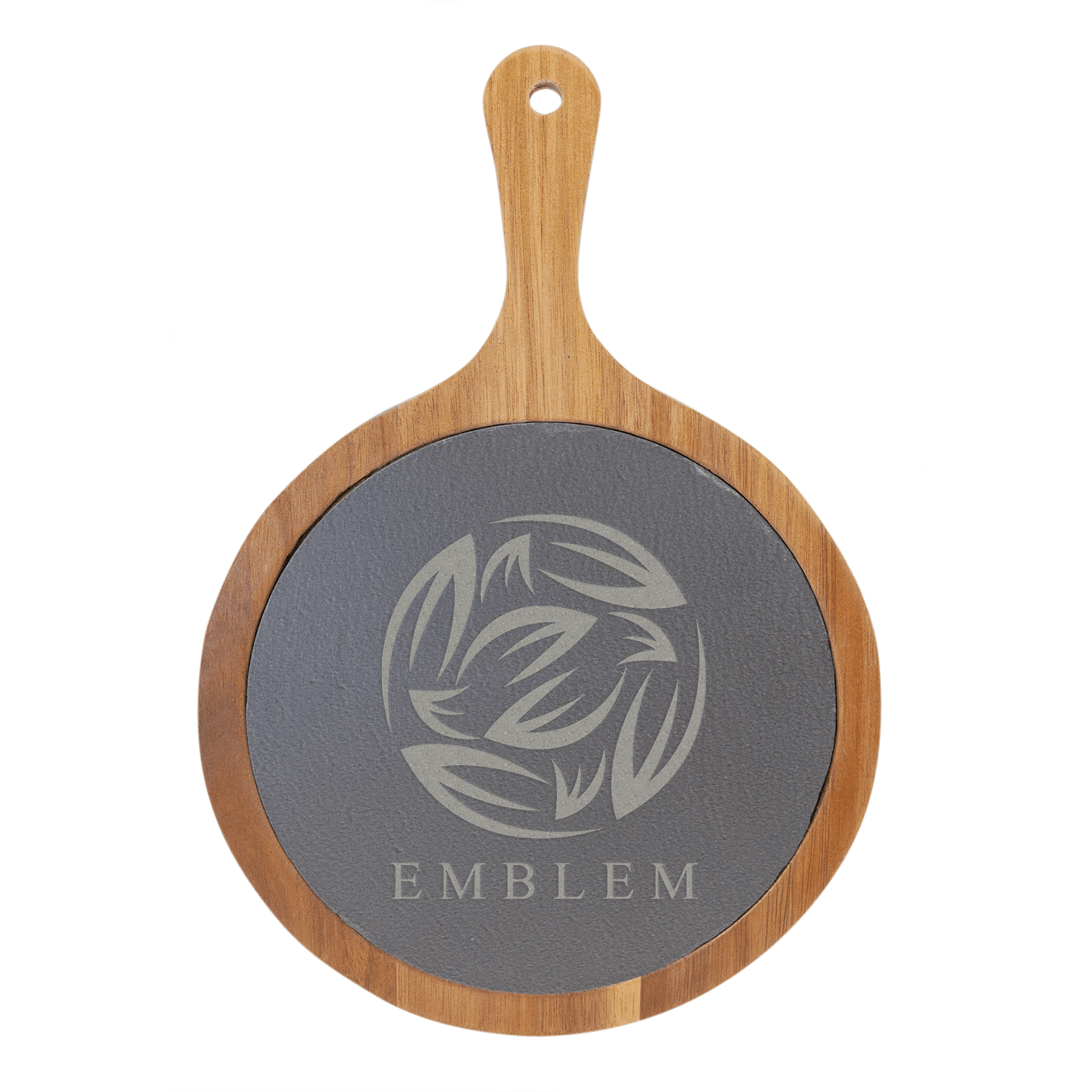 8 1/4″ x 12 1/4″ Round Acacia Wood/Slate Serving Board with Handle
