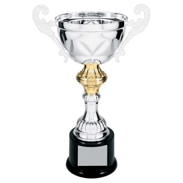 Silver Completed Metal Cup Trophy on Plastic Base 11 1/2 ” CMC203S