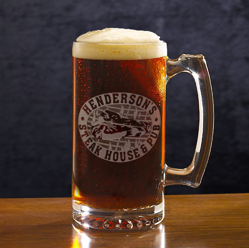 Shipping Description: 25 ounce beer mug made of glass with engraving