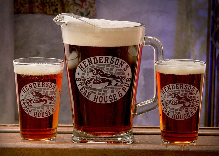 Personalized Beer Pitcher and Glasses set with Steak House design